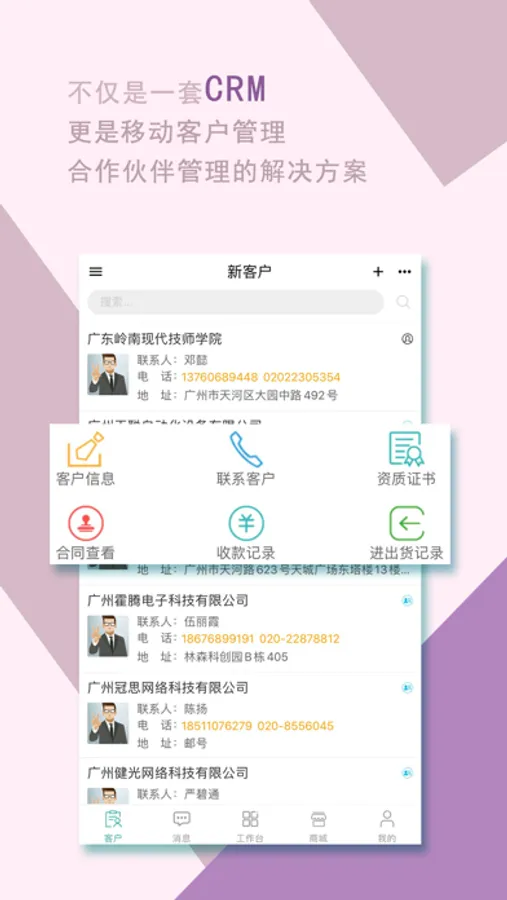 1、高效的客户打理功能,到访定位客户位置,自动安位置排序客户资料;