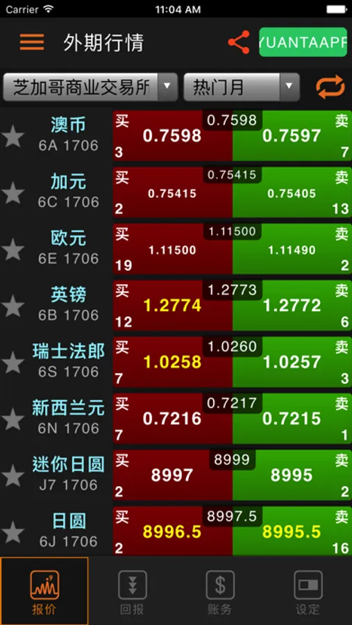 【元大香港GO】全新視覺的行情報價區塊,友善切換操作介面,管理商品更方便,支持全球市場即時報價,支援亞洲、美洲、歐洲多家交易所,您可以在【元大香港GO】查看各大指數、外匯、金屬、能源、農產品等多種期貨合約24小時即時行情數據。
