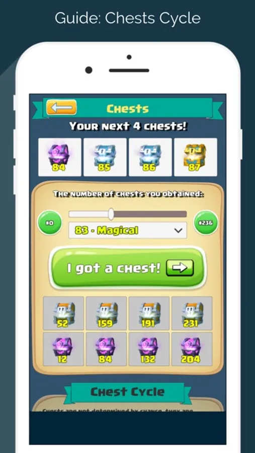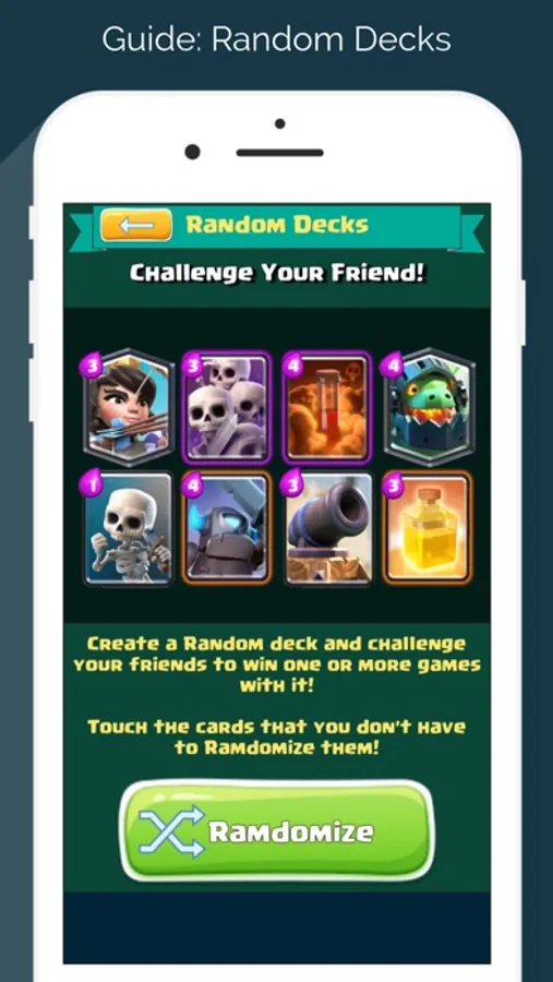 "Guide for Clash Royale" is the reference guide for all fans of Clash Royale including the most complete GUIDE, the best DECK BUILDER (with personalized suggestions), CHEST TRACKER, STRATEGIES and more all in one app!