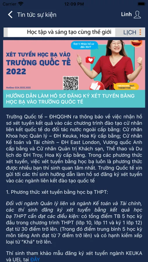 Ứng dụng hỗ trợ học sinh, sinh viên tuyển sinh hướng nghiệp của Khoa Quốc tế - Đại học Quốc gia Hà Nội