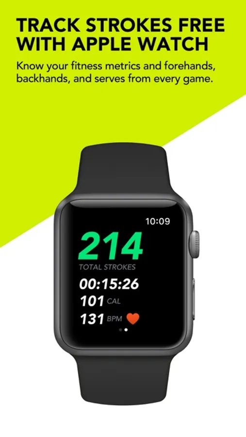 Track your strokes for free with an Apple Watch! Your stroke and fitness statistics are just a ‘glance’ away. Lift up your wrist to see your stroke count, play time, calories, and heart rate after every swing. Your session summary includes detailed fitness metrics and a breakdown of forehands, backhands, and serves.
