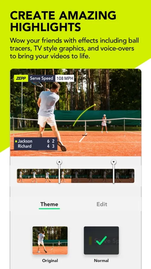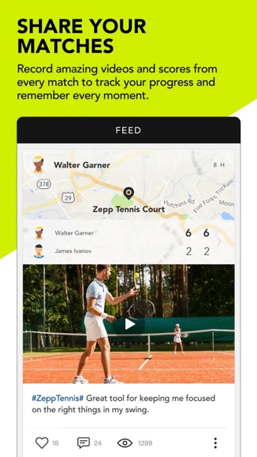 You focus on your match, we'll track everything else! With Zepp Tennis record scores for every match, create awesome highlight clips from video you captured during your matches, network with other players in the Zepp community, and compete on the leaderboards for free. Share your data with the Health app and your Practices and Matches will help you reach your fitness goals.