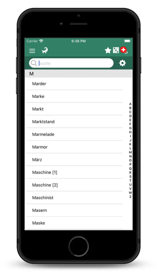 • Mit einem Wisch durch das Alphabet können sie via SCHNELLSUCHE direkt zur gewünschten Wortgruppe springen.