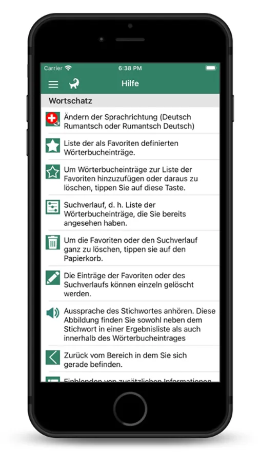 Der einzigartige, professionelle und zuverlässige Wortschatz Rumantsch Grischun funktioniert komplett offline und enthält knapp 7‘000 Wörter des täglichen Gebrauchs mit zusätzlichen Synonymen – ideal für Alltag, Studium, Beruf oder Reisen!