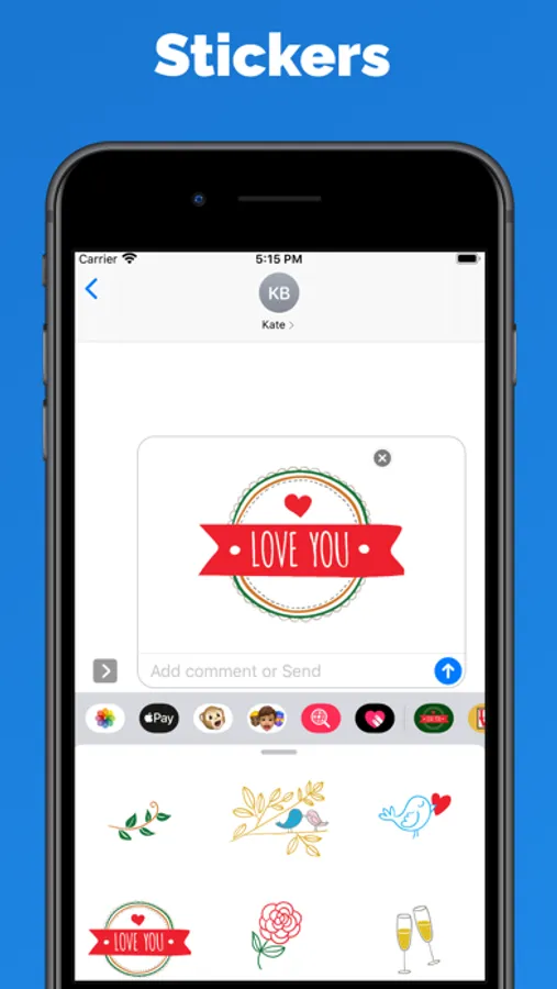 • Place stickers on top of message bubbles, other stickers, and photos;