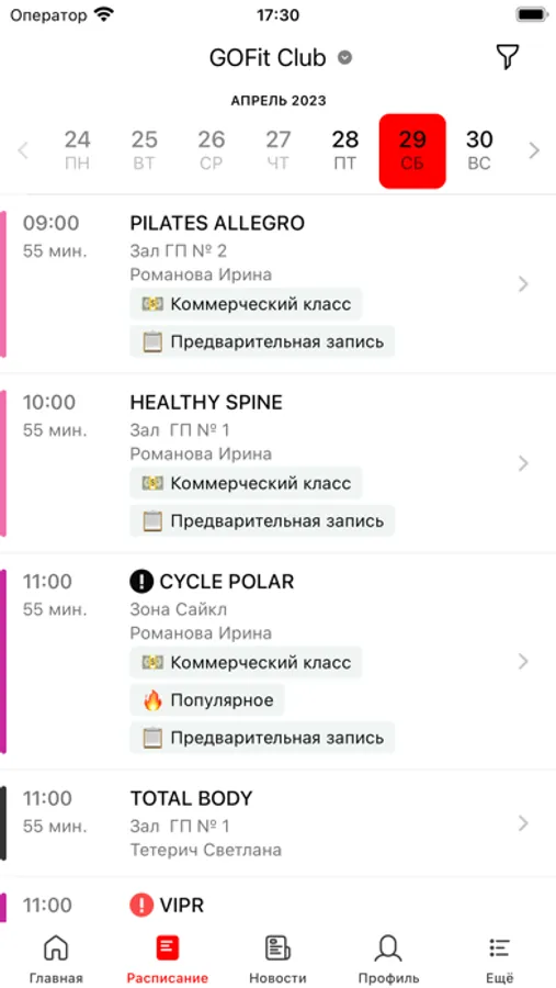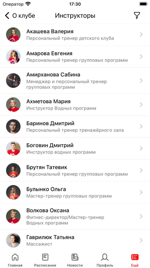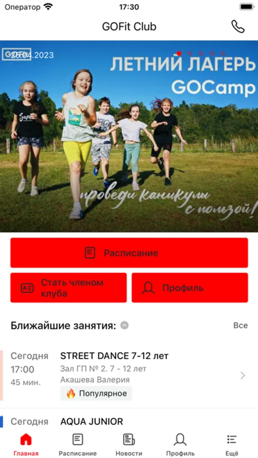 Приложение для членов клубов. С помощью приложения вы можете следить за новостями, расписанием клуба, оперативно получать информацию об изменениях в расписании и специальных предложениях.