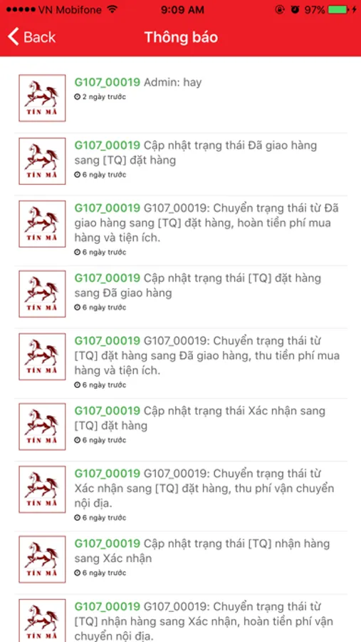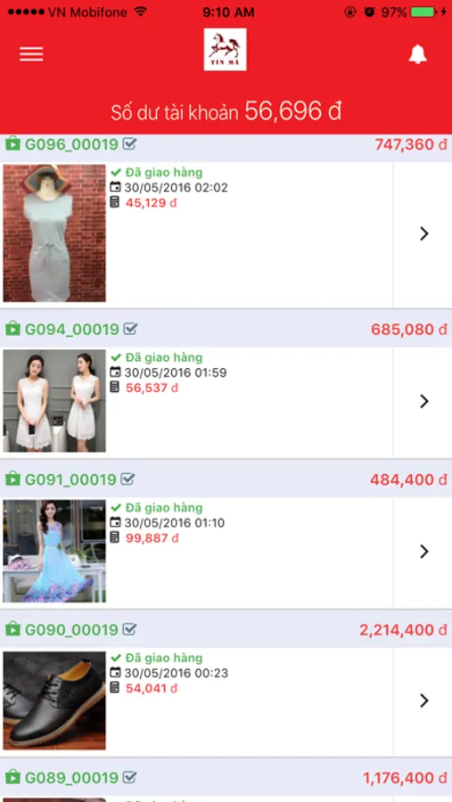 - Hỗ trợ xem các mặt hàng đã đặt trên website của Tín Mã