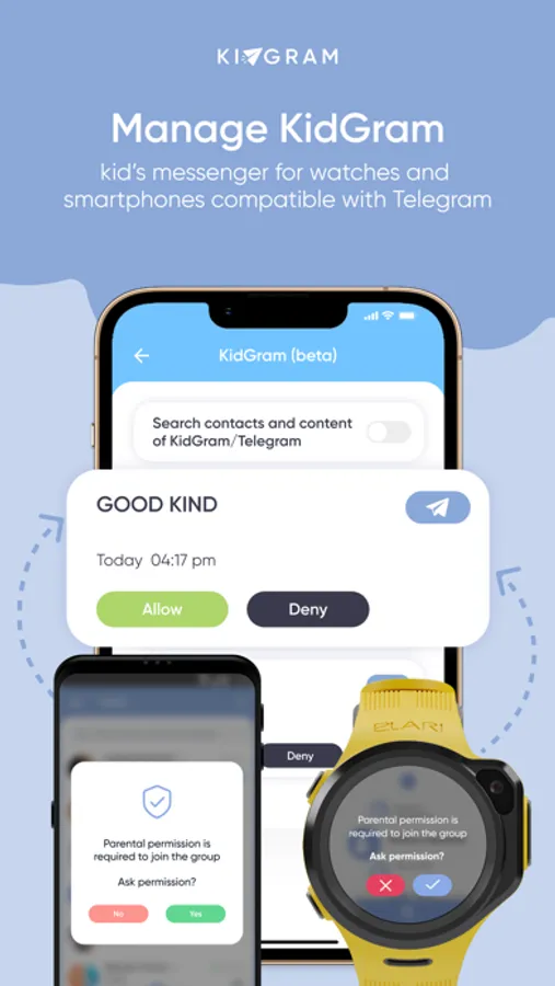• Manage the KidGram kid messenger on the corresponding watch (without access to chat history)