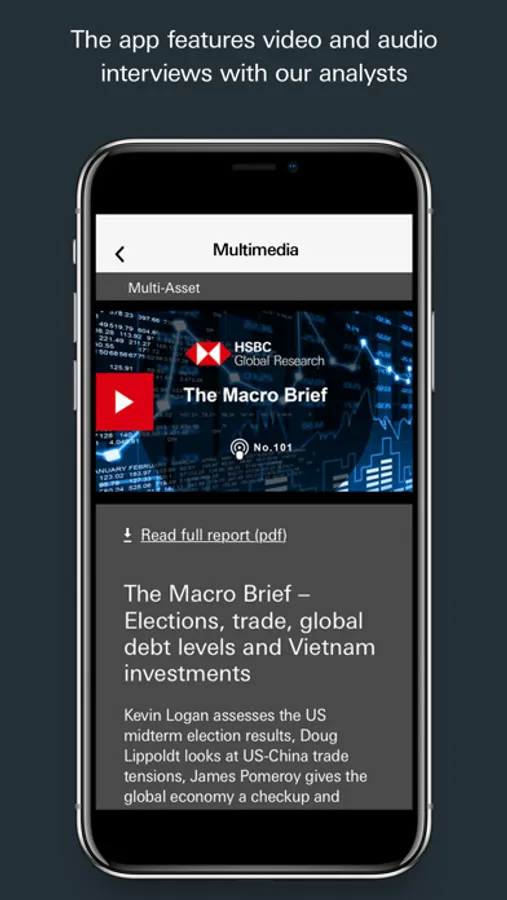 The HSBC Global Research app has the big picture on the latest trends and developments affecting the global economy and financial markets – from China and trade to the role technology plays in shaping smart cities. The app showcases key pieces of research as well as video and audio interviews with HSBC analysts.