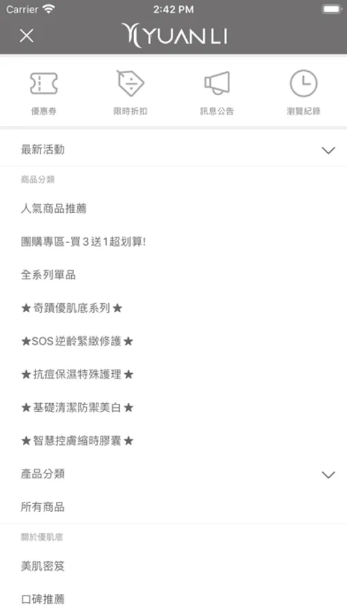 「願麗YUAN LI」是廖苑利醫生本著「願妳美麗」的初衷,所獨創「優肌底」與「動態保養」的醫美精品護膚品牌。「願麗YUAN LI」傳遞了苑利醫生相信好的肌膚保養品,不應該是盲目追求流行的成分,而是要能具備讓使用者安心、安全並且有效的能力。願麗優肌保養品,長時間在臨床上的使用,獲得廣大女性客戶的一致認同及喜愛,更獲得FG特優標章及Beauty美容大賞的肯定,適合各種膚質,包含一般肌、油性肌、乾燥老化肌、敏弱肌及術後修護使用。