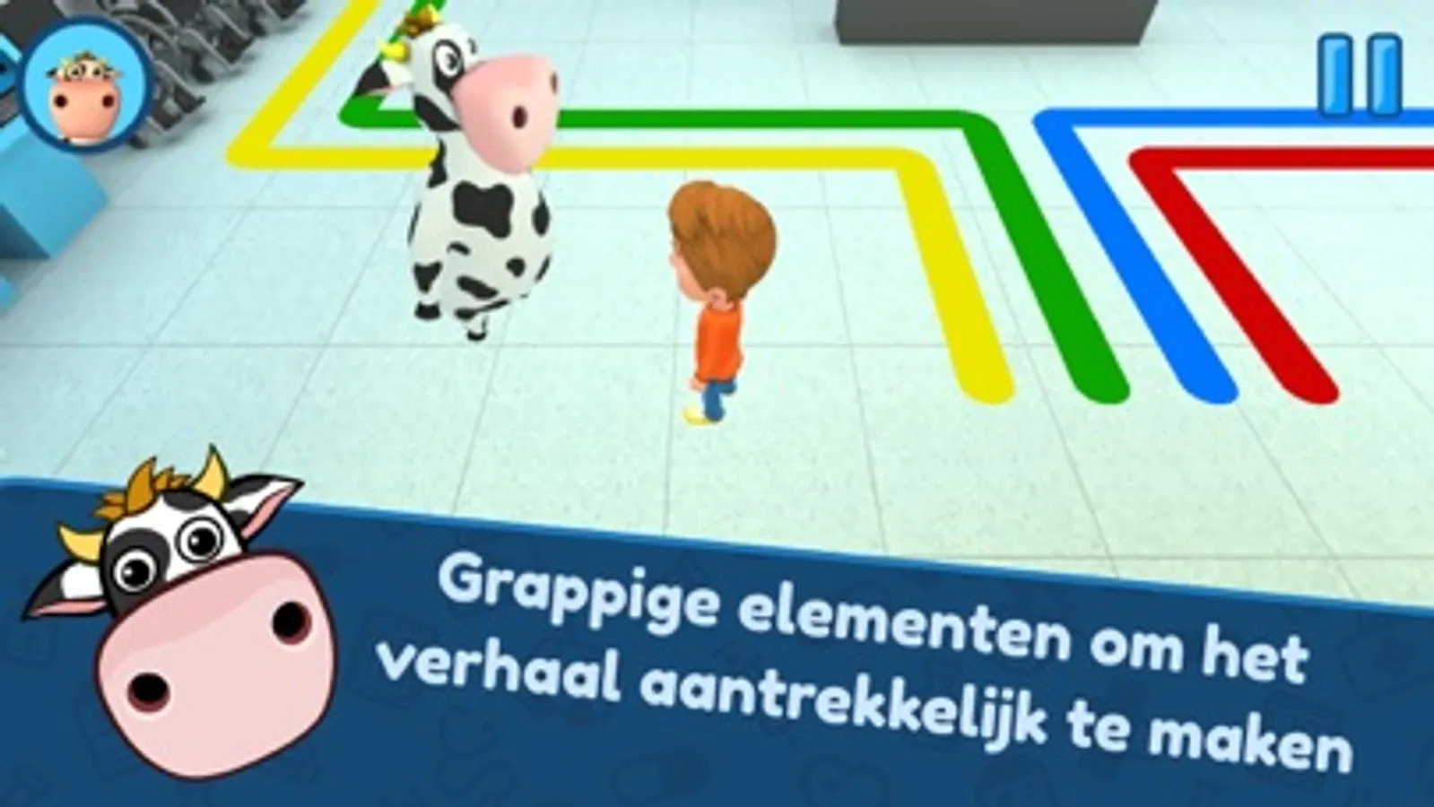 De Hospi Koe neemt je mee op avontuur. Al spelend maken kinderen kennis met het hele traject van voorbereiding thuis tot ontslag uit het ziekenhuis. Ze maken hun koffertje (met knuffel), leren dat ze nuchter moeten zijn, racen naar het ziekenhuis, zoeken hun weg in het ziekenhuis, maken kennis met de anesthesist, mogen elektroden plakken en verwijderen, en zwaaien het ziekenhuisteam uit. En dat allemaal in een half uurtje.