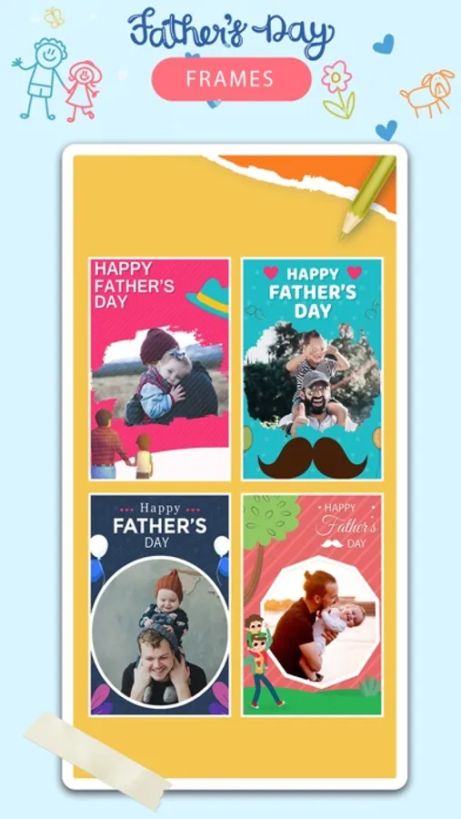 Father's Day Photo Frames is a collection of many lovely photo frames for you to decorating your lovely photos. It has the same function as the Love Photo Frames, Birthday Photo Frames and other apps.