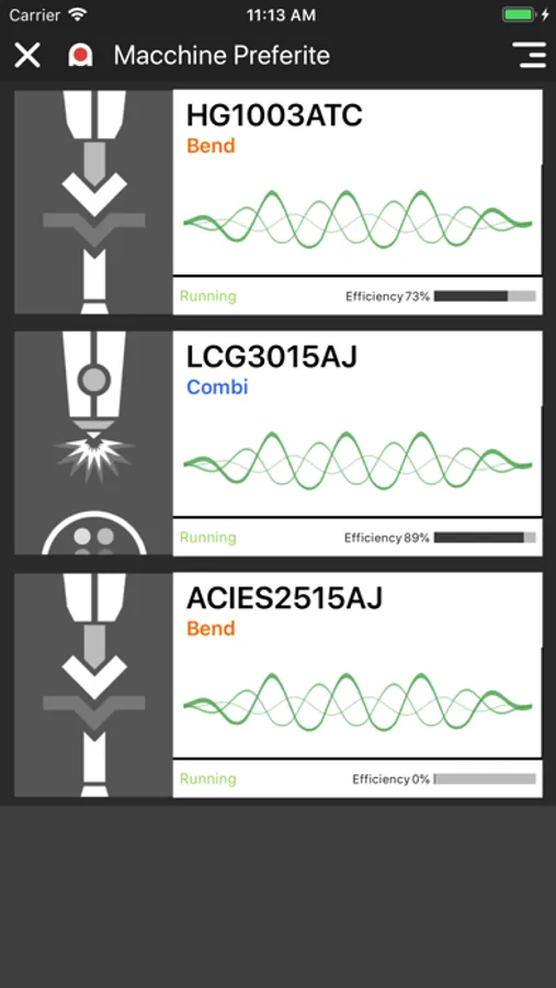 It allows to view the machine status always updated, information related to current working, alarms and the most significant statistics.