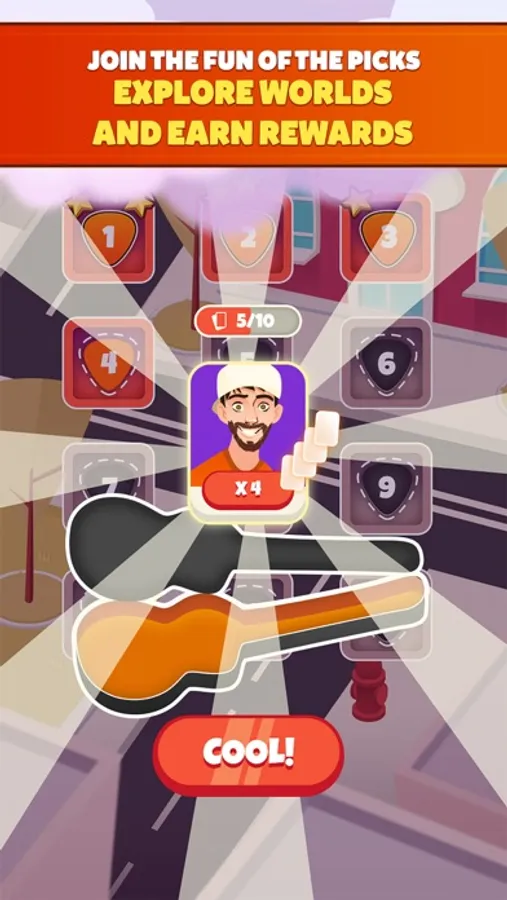 - Worlds to conquer: there is the great Pick Town (a place where every musician has been through sometime); the dauntless Graveyard (where it’s worthy to overcome your fear of losing picks); and the Tropical world (a place immersed on the hot rhythm of the picks success).