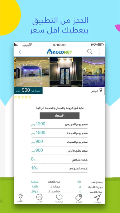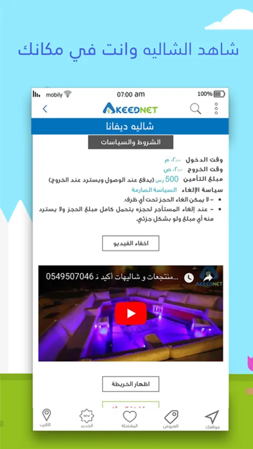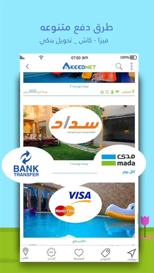 أول تطبيق متخصص في الحجز والدفع الإلكتروني للمنتجعات والشاليهات والاستراحات والمخيمات وقاعات المناسبات