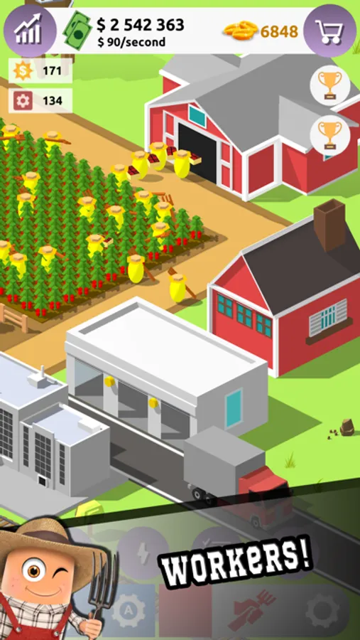Relaxing, addictive game for strategic minds and lovers of farming and simulation games! Clicker game, farm non stop to expand your business!