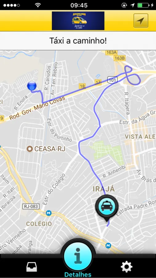 Nosso aplicativo permite que você chame um de nossos táxis e acompanhe o deslocamento do carro no mapa, sendo avisado quando ele estiver na sua porta.