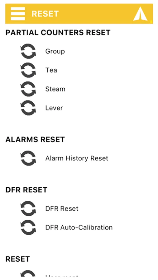 All machine parameters set up: data machine, boiler and group temperature, Milk Control System, timer, lever, etc.