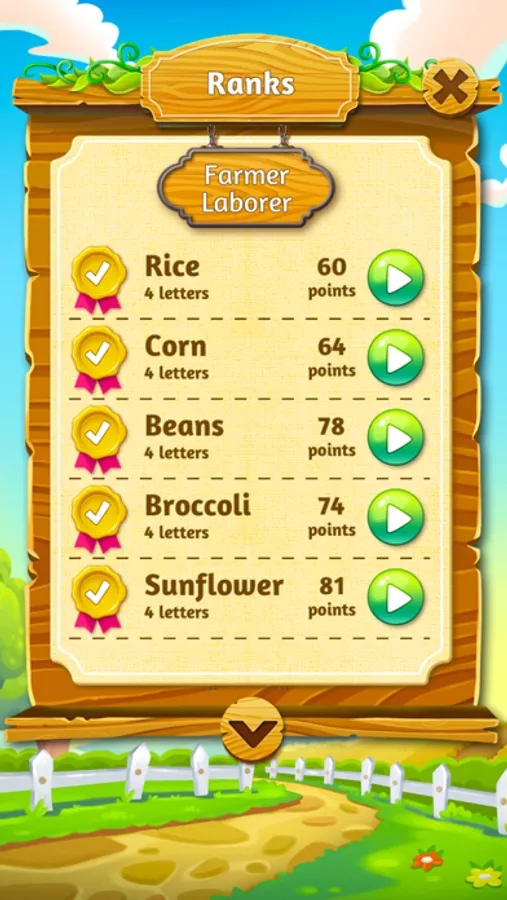 Unlock and advance through new farming ranks, by solving the word puzzles.