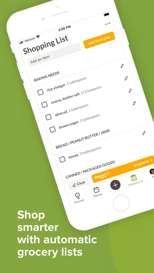 Shop with Smart Grocery Lists that match your plan. Ingredients sort into categories for efficient, satisfying shopping. Check off items as you go, or get groceries delivered or ready for curbside pickup.