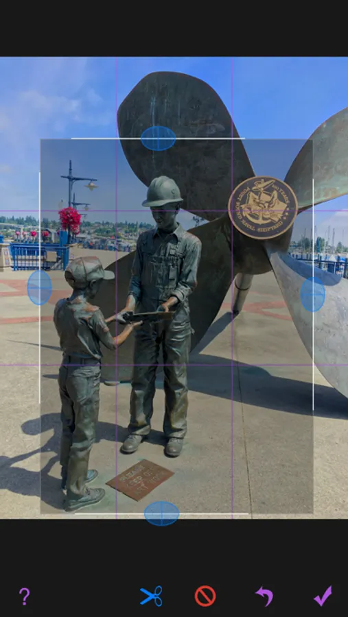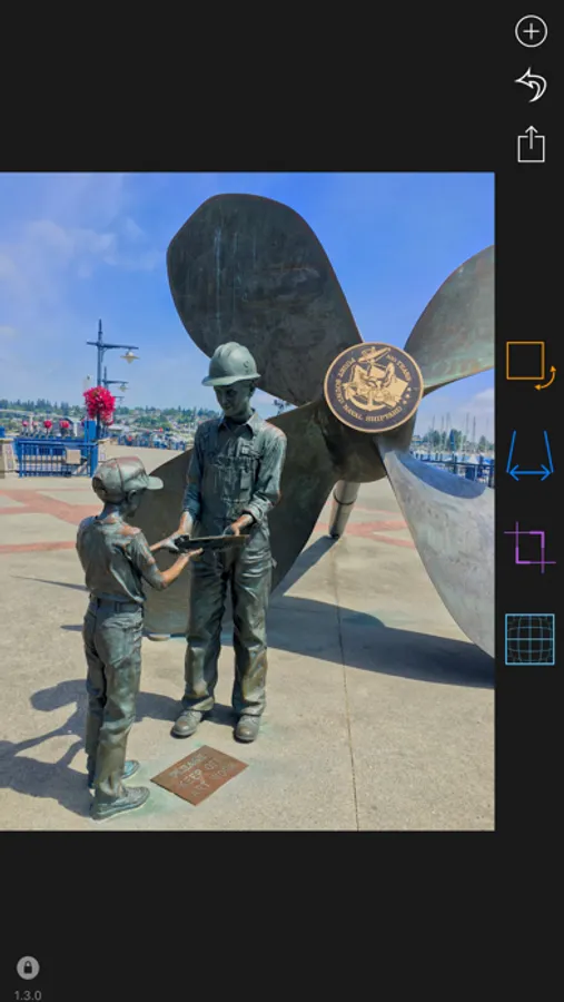 Fisheye adjustment not only makes for cool landscape and panorama images but also can be used selectively to place greater emphasis on specify portions of the image being edited. This is shown in the app screenshots, just look at the emblem behind the statue.