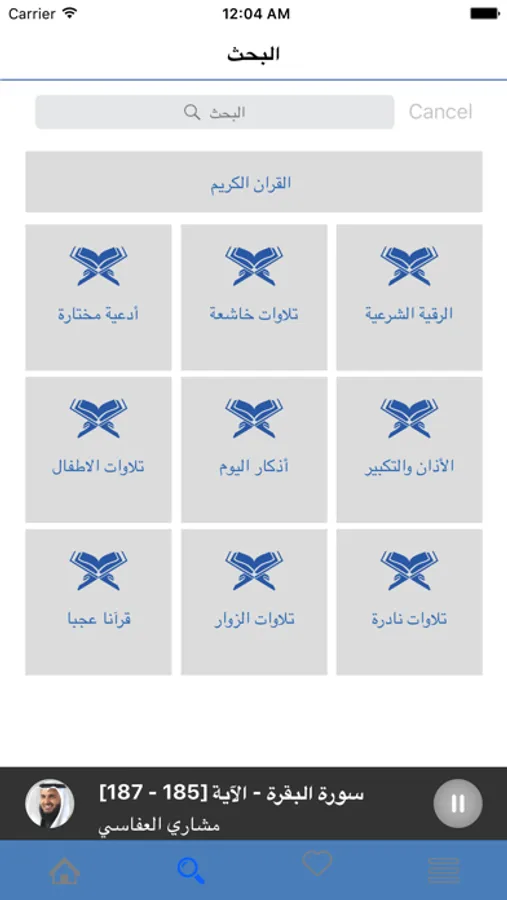 برنامج تي في قران يتيح لك الاستماع للقران الكريم لأكثر من ٧٠ قارئ واكثر من ١٨٠ مقطع خاشع وتلاوات أشبال و قسم خاص في اذكار الصباح والمساء