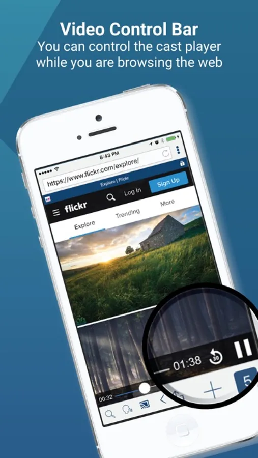 * Chromecast Control Bar allows you to control the playing video on your TV (Play, Pause, Rewind, Forward, 30 Seconds Replay)