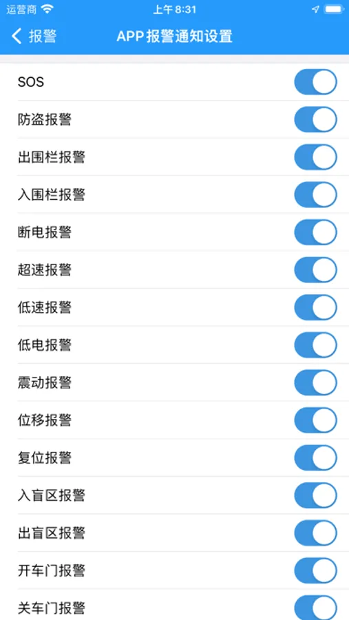 6:位置设防:设定车辆位置移动自动报警(防盗)。
