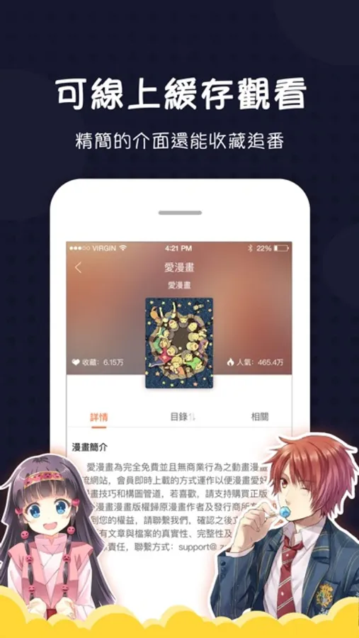 Through Facebook or Twitter login, you can collect, download, view the history of comics;