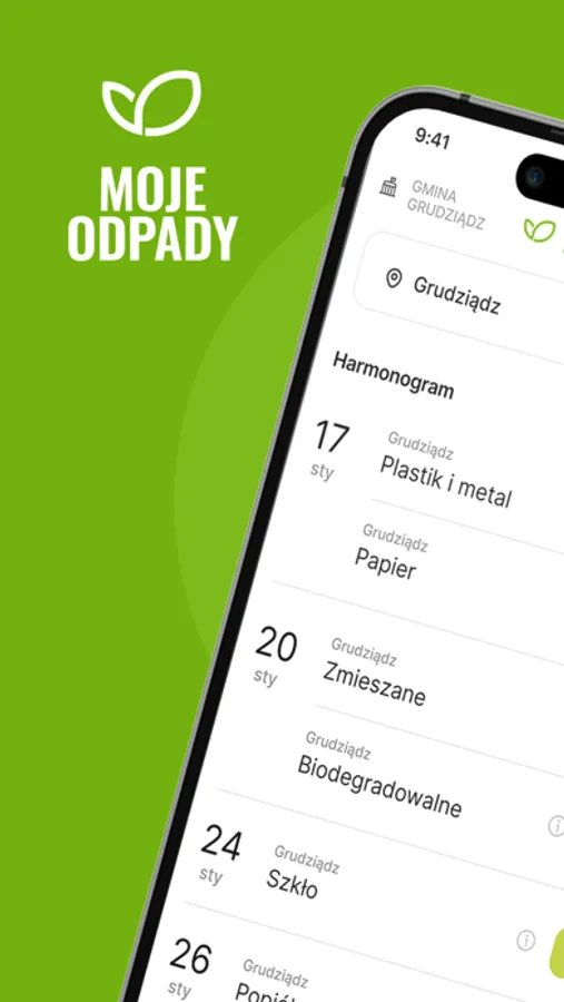 "My Waste" is a mobile waste collection schedule, which is an independent part of the Waste24 platform. The product is available to residents of Communes and Cities whose Local Governments have established cooperation with our company. We invite you to familiarise yourself with the offer to automate the processes related to the transfer and receipt of information on current waste collection dates.