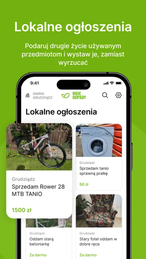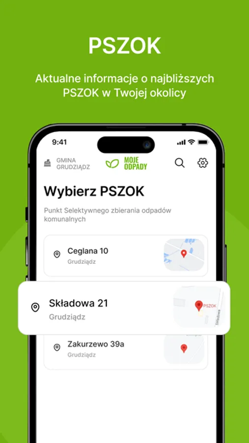 Get PUSH messages with a reminder on the waste collection - "My Waste" will send you a reminder about the type of fraction that is collected on a given day. This functionality makes it much easier to put the containers or waste bags in front of your property. Removal of solid waste is another area of life that has been successfully made available with iOS application.