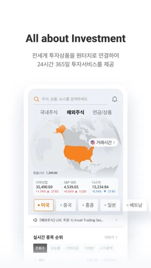 -국내주식은 물론 해외주식, 연금, 금융상품 등 전 세계 투자상품을 원터치로 접근하고 24시간 트레이딩 할 수 있는 금융투자 플랫폼을 제공합니다.