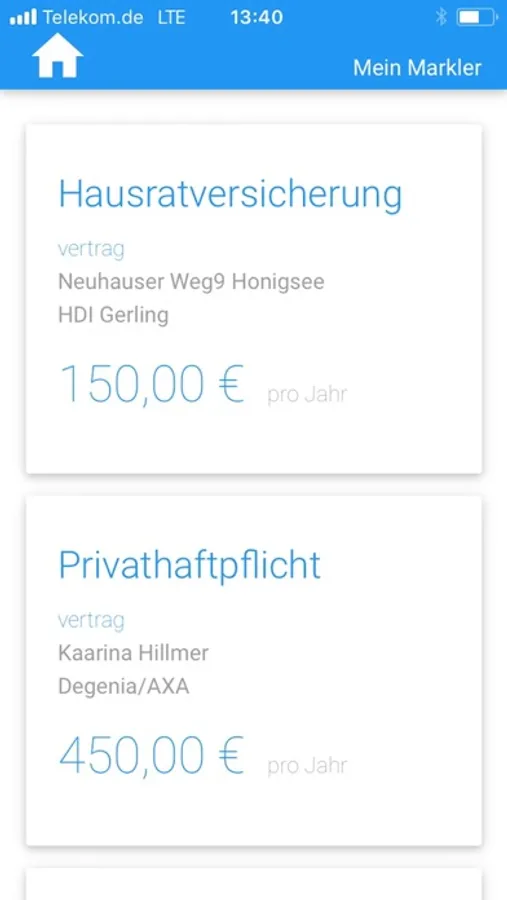 Fragen Sie ihren Versicherungsmakler nach den Zugangsdaten.