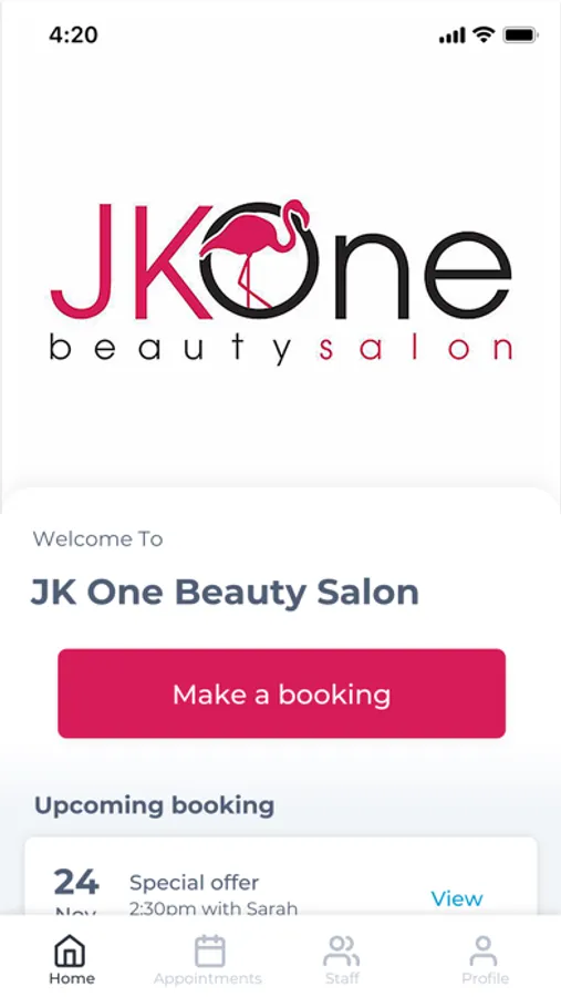 The JK One Beauty Salon app makes booking your appointments and managing your loyalty points even easier. You're just a few taps away from feeling good and looking great!