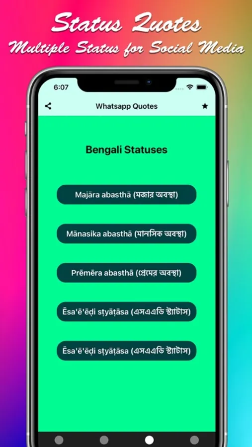 3-All type of statuses for wassup, favebook, Viber, snapchat stories and message app are there for you.