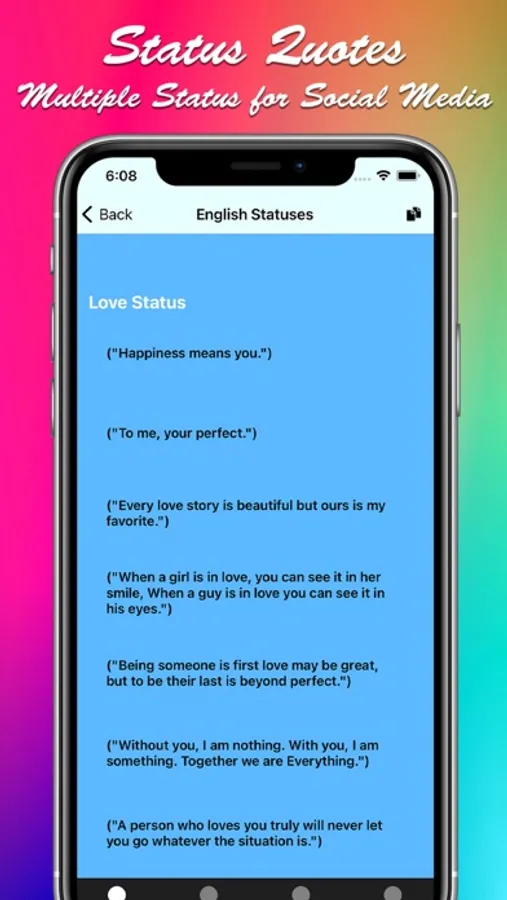 You have best statuses enlisted in this app for best messaging app and social media apps like WhatsApp story, Snapchat profile, Viber and fb. It’s non purchased app.