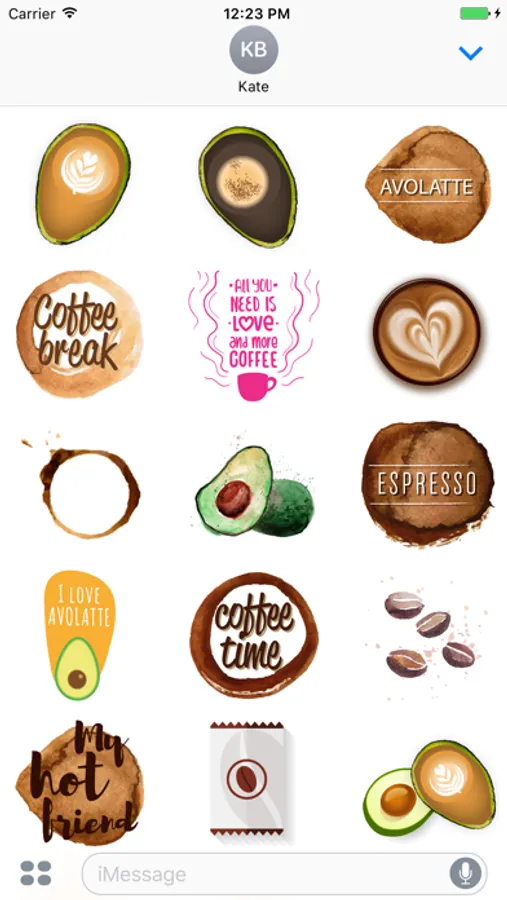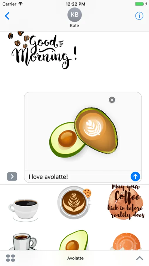 Improve your messages with 40 amazing and original coffee and avocado stickers.