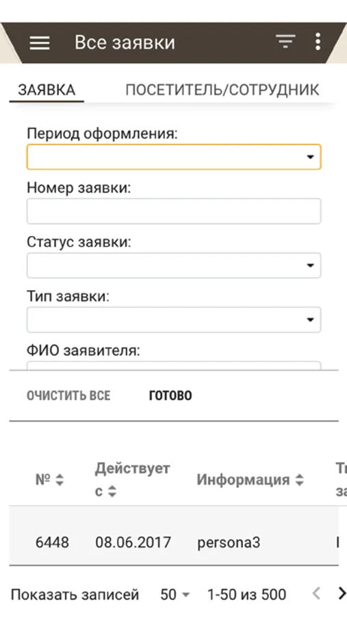 • создать заявку на разовый пропуск на посетителя с указанием даты или периода действия пропуска, компании посетителя, а также марки и номера его автомобиля;
