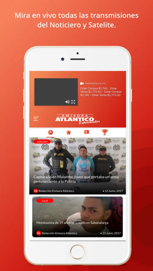 Emisora Atlántico presenta su nueva y mas moderna aplicación móvil, ahora no solo nos podrás escuchar, también nos podrás ver, leer, ser reportero, consultar tus documentos extraviados, ver las estadísticas de tus equipos favoritos y escuchar los podcast. Encuentra en tu celular a Jorge Cura líder en noticias, todas las transmisiones de los partidos del Junior de Barranquilla y la más variada programación musical.