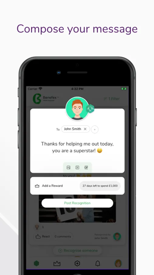 Say a big ‘thank you’ to your colleagues in an instant, with our intuitive social recognition app. Express your appreciation with text, memes, videos and GIFs.