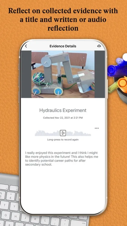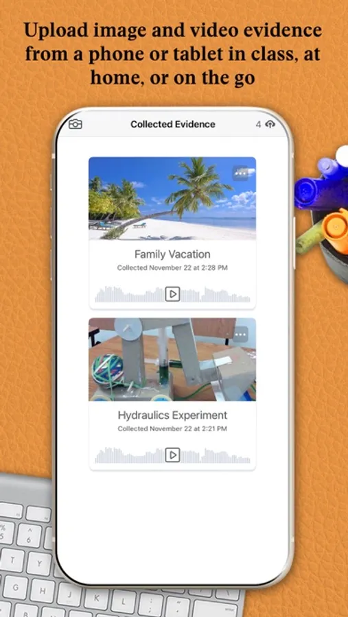 - Upload image and video evidence from a phone or tablet, with added thoughts and reflections