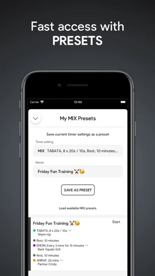 SmartWOD Timer is a simple and easy to use timer app for all common functional fitness workouts: AMRAP, For Time, EMOM and Tabata. Just choose the workout type, set the duration and GO!