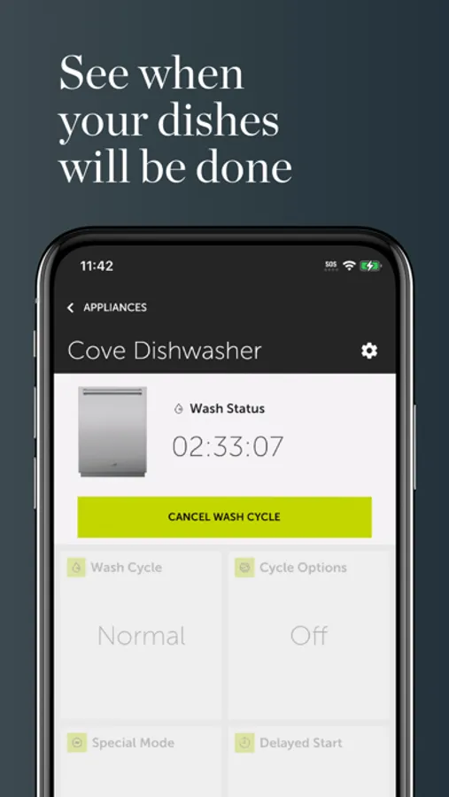 • Receive push notifications that a cycle is complete or the dishwasher door is open