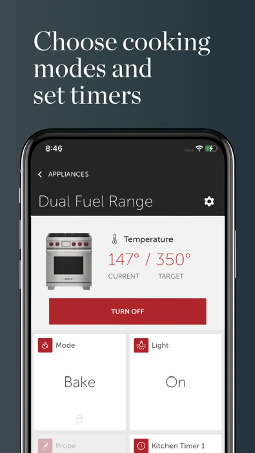 • Monitor cooking appliances—receive preheat, temperature probe, and cook time notifications