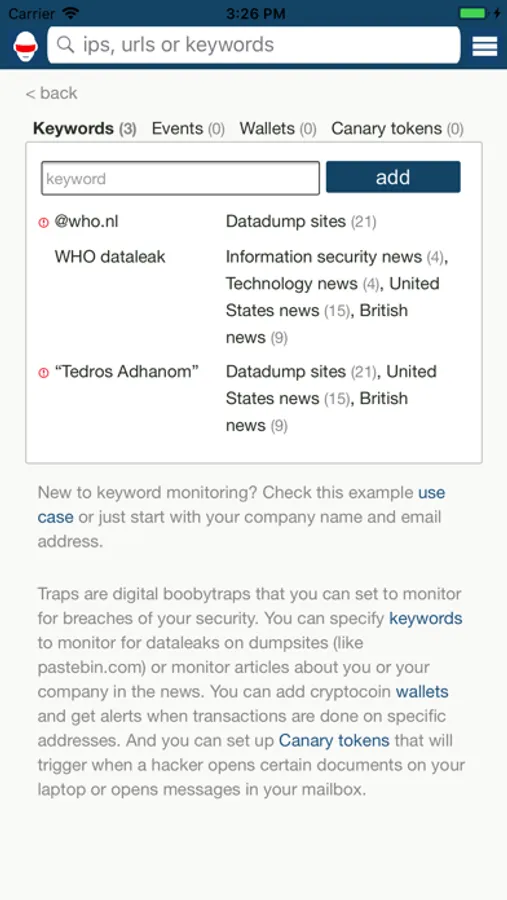 ShadowTrackr will find your digital footprint, track your online assets, and guard them. When something happens that you should know, you'll receive an alert on your iOS device. You can't always prevent bad things from happening, but you can make sure you are the first to know. Start fixing your security problems before angry clients or business partners call you ...