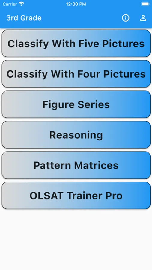 Updated for 2022! Train for gifted and talented testing. This app is designed to increase reasoning and problem solving skills for grade school kids. Specifically the exercises within are for mastering the OLSAT test at the 3rd grade level (Level D).