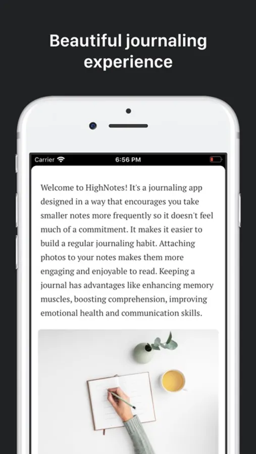 HighNotes is a journaling app designed in a way that encourages you take smaller notes more frequently so it doesn't feel much of a commitment. It makes it easier to build a regular journaling habit. Attaching photos to your notes makes them more engaging and enjoyable to read.
