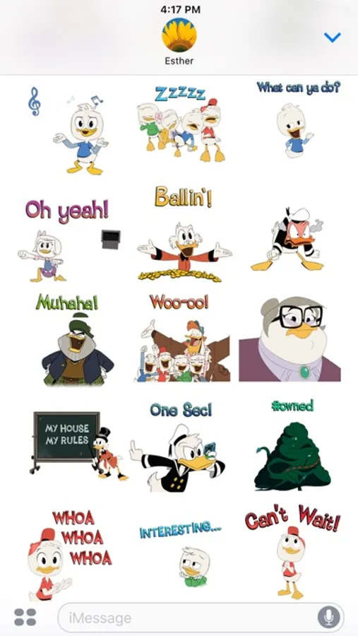 "Woo-oo! Make your messages adventurous with this animated sticker pack featuring Scrooge, Huey, Dewey, Louie, Webby, and more!"