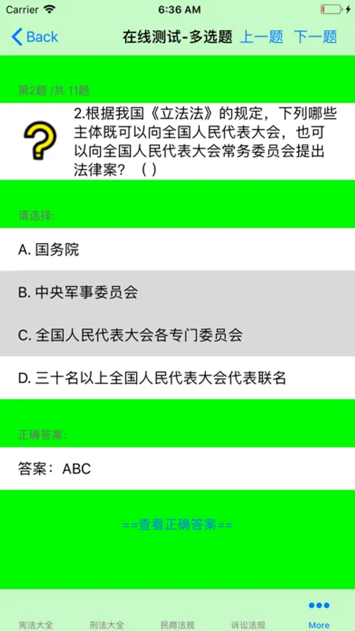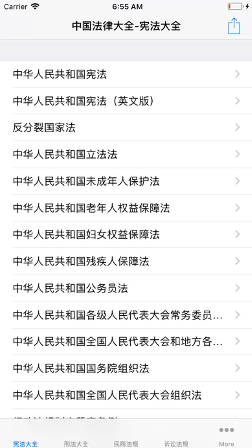 内容全面、丰富的一款中国法律法规总结大全及测试题 APP,内容涵盖了: