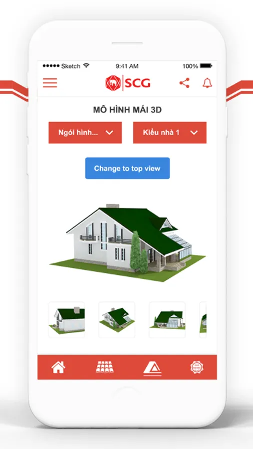 • Xoay mô hình 360 độ để quan sát các góc của ngôi nhà sau khi lợp ngói
